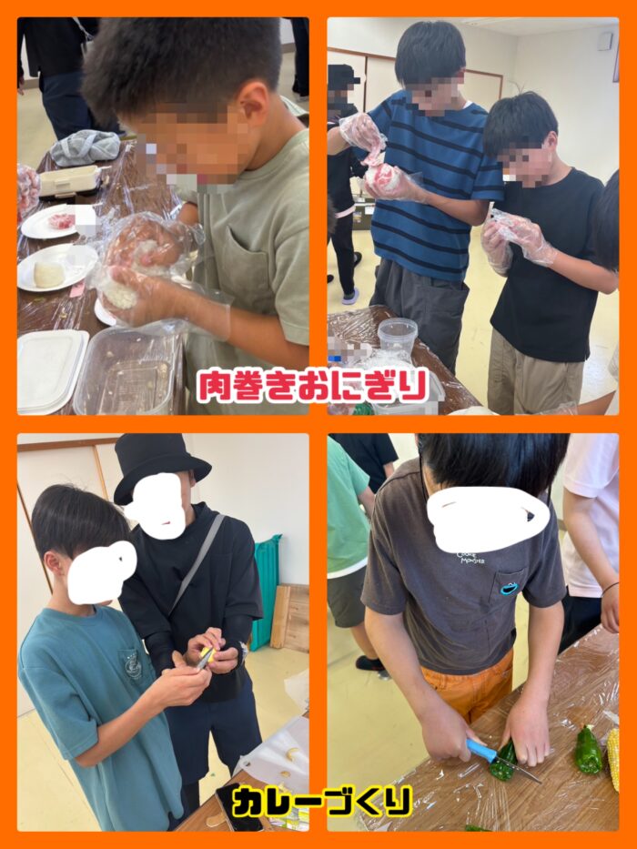 ↑肉巻きおにぎり、カレー作り